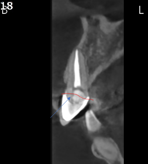 CT 검사 결과 치아 머리 부분이 부러졌습니다.