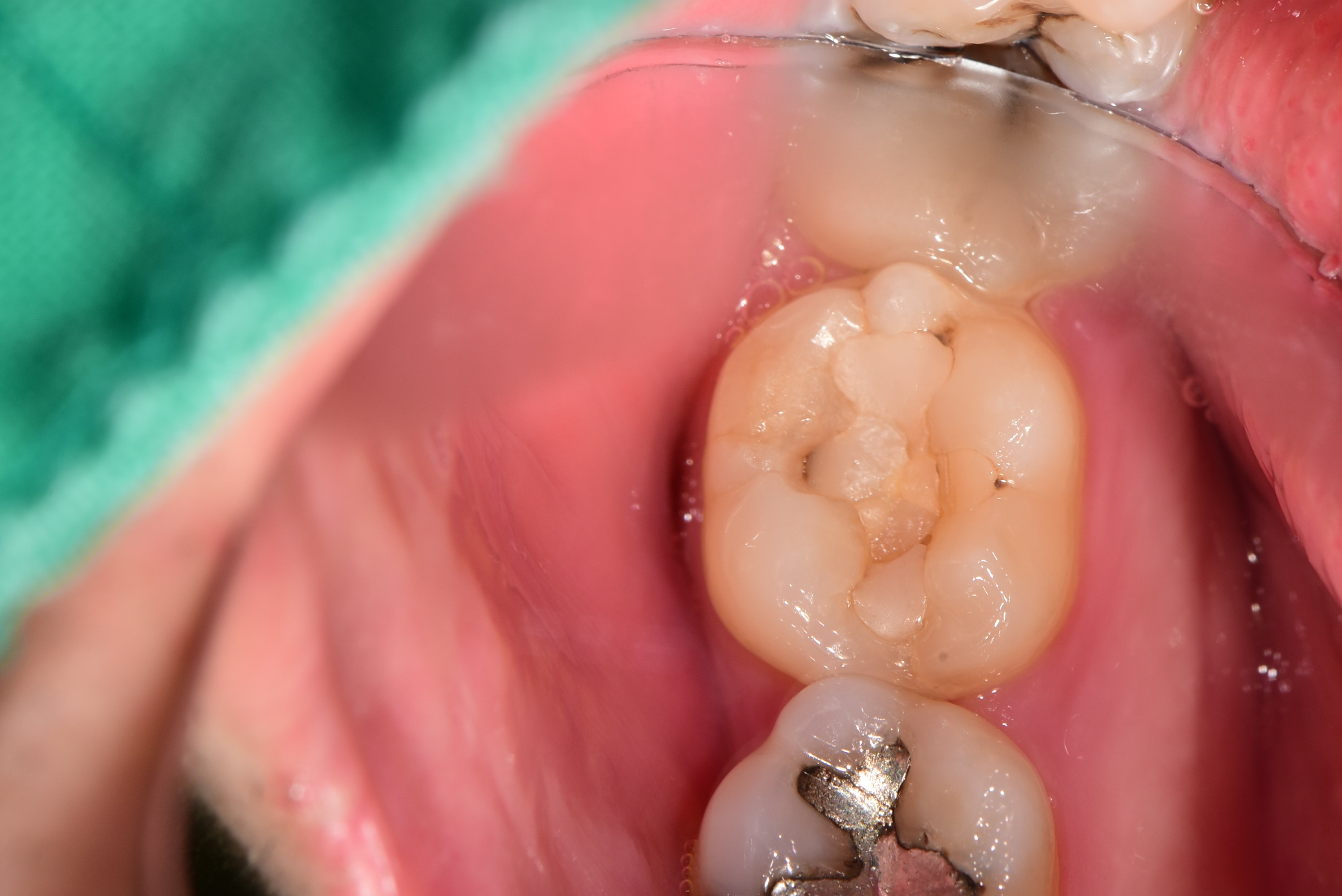 사진: 과거에 치료한 레진 인레이 주변에 균열이 생긴 모습