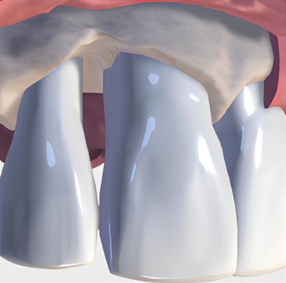 치아가 발치되어 흡수된 치조제에 콜라겐 매트릭스를 이식하는 치조제증대술을 통해 심미적인 전치부 브릿지 제작이 가능합니다.